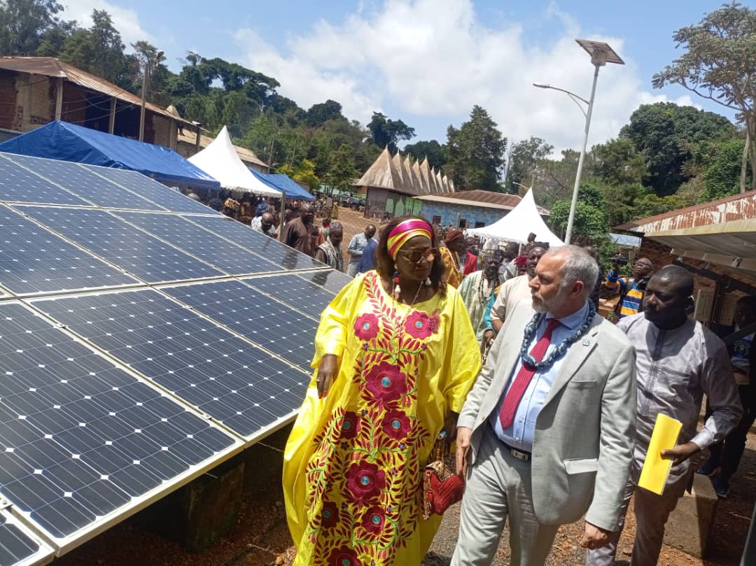 De façon minutieuse, il a visité les projets réalisés par l’Aimf à Bangangté comme l’éclairage public du Boulevard, la mini-centrale solaire de l’hôpital de district de Bangangté, le Centre de traitement des boues de vidange, les projets de captages et d’adduction d’eau à partir de Batchingou et Bamena. Aussi il a visité les travaux réalisés dans les chefferies Bangangté et Bangoulap par la Fondation DA Planet au profit du Riprem, dans le cadre de la phase 1 du projet «chefferies Solaire», dans le but du financement de la phase 2 par l’Aimf.