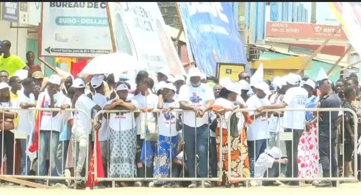 Les habitants de Pointe Noire massés le long de la route pour féliciter par les youyous et applaudissements le Président Denis Sassou N’guesso pour le développement des infrastructures routières