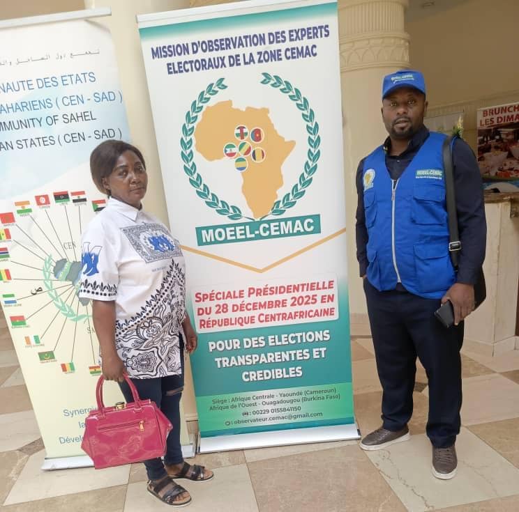 Sur accréditation de l’Autorité Nationale des Élections (ANE), la Mission d’Observation des Experts Électoraux de la zone de la Communauté Économique et Monétaire de l’Afrique Centrale (MOEEL-CEMAC) a déployé dans les circonscriptions à électorat fort, 25 observateurs internationaux dont 35% des femmes dans le cadre du premier tour des élections groupées du 28 décembre 2025 en République Centrafricaine.