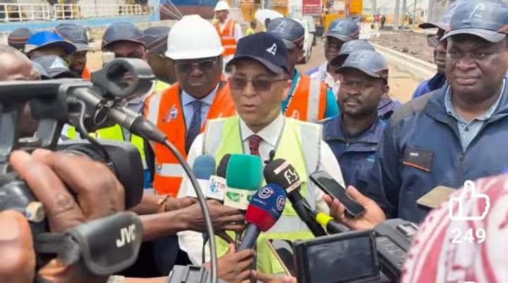 « Cette visite de terrain nous a permis de constater avec satisfaction l’évolution positive des chantiers structurants qui portent le développement de notre port. Nous nous trouvons actuellement sur le site de construction des silos de stockage de céréales. Ce projet stratégique, qui permettra d’accueillir d’importants volumes de blé, de maïs et de riz, est un pilier essentiel pour la sécurité alimentaire de la République. Il s’inscrit directement dans la vision de modernisation des infrastructures annoncée par le Chef de l’État dès 2011.