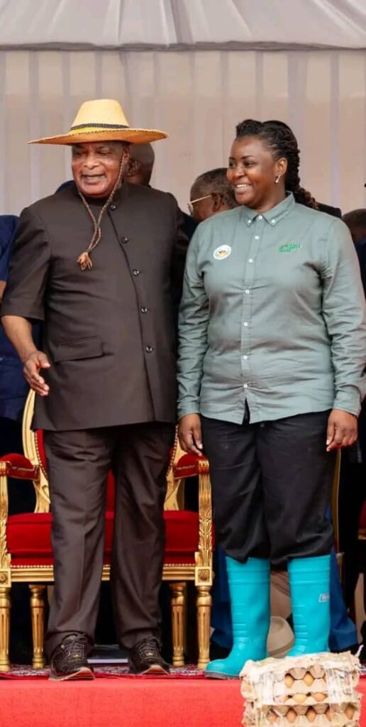 La Jeune entrepreneure Rachelle Rachetée Kombela les fruits de leurs récoltes au président Denis Sassou N’guesso sous l’administration des officiels