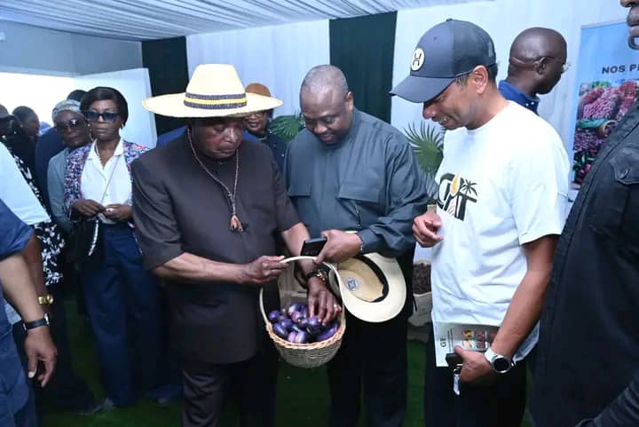 Le Président Denis Sassou N’guesso apprécie la qualité récoltes exposés à la foire agricole.
