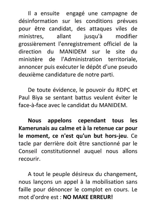 La réaction de Anicet Ekane, president du Manidem