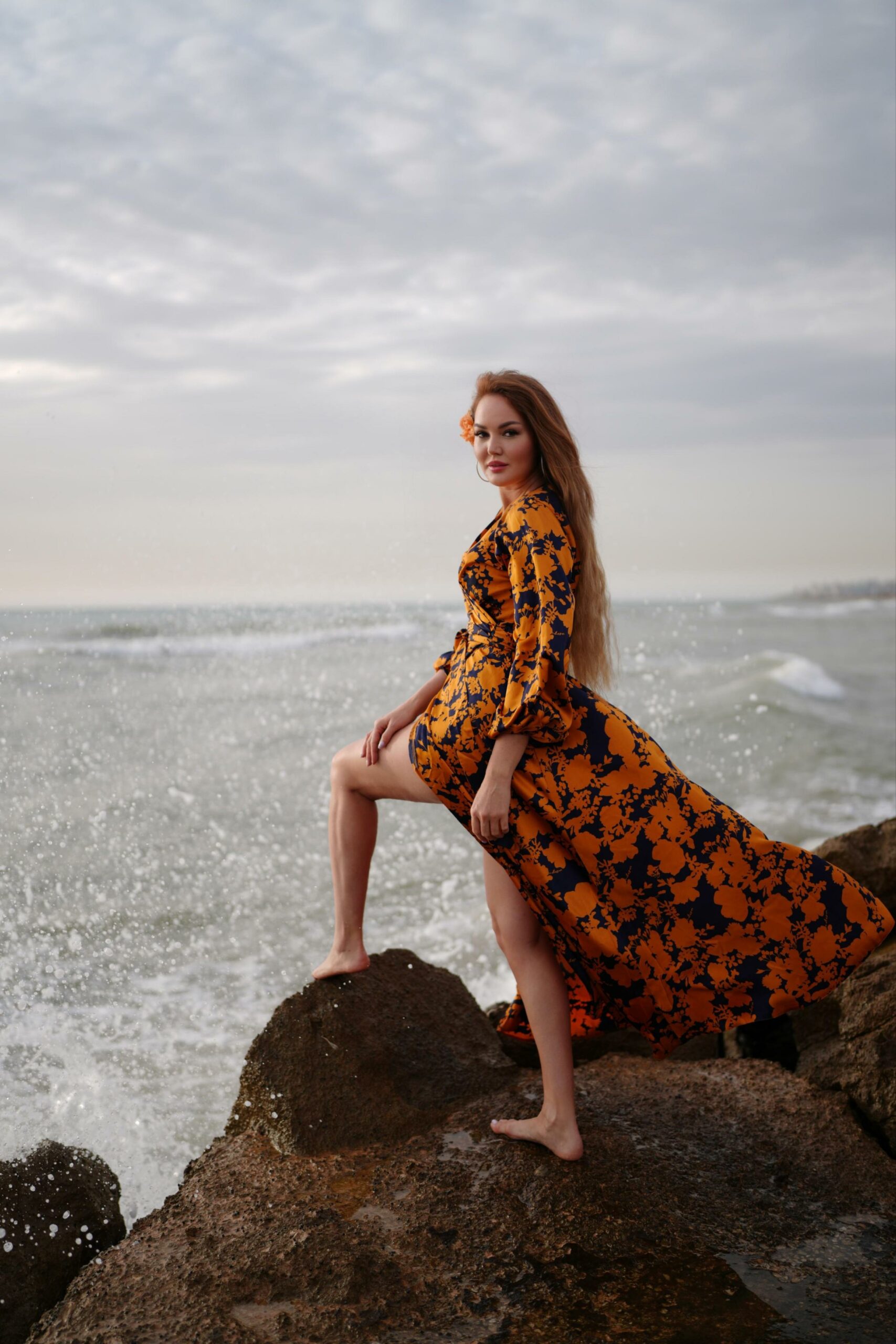 Tatar women are known for their unique beauty and intelligence. They often have youthful faces, tall height, and stunning eyes with mixed colors. They are highly educated, speak several languages, and follow their Muslim faith with honesty and wisdom. Roza represents these qualities—she is 180 cm tall, has natural red hair, a warm glow, and rare emerald-green eyes.